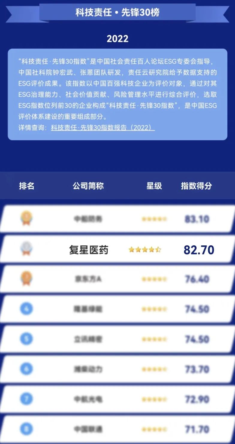 z6com·尊龙医药入选2022年“科技责任·先锋30指数”