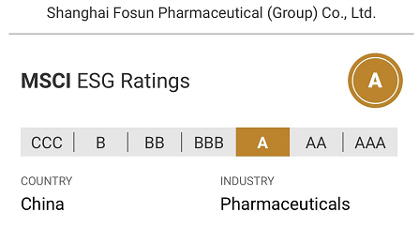 (13 October 2022, Shanghai China) The world’s leading index company Morgan Stanley Capital International (“MSCI”) recently announced its latest annual Environmental, Social and Governance (“ESG”) rating results. In recognition of its outstanding performance in ESG,MSCI upgraded the ESG rating of Fosun Pharma (stock code: 600196.SH, 02196.HK) from BBB to A, ranking the top level in China. Fosun Pharma's MSCI ESG rating has been upgraded from BB in 2020 to BBB in 2021. The continuous upgrade to A this year demonstrates the high recognition of Fosun Pharma's ESG management by the capital market, and shows Fosun Pharma’s long-term investment value.